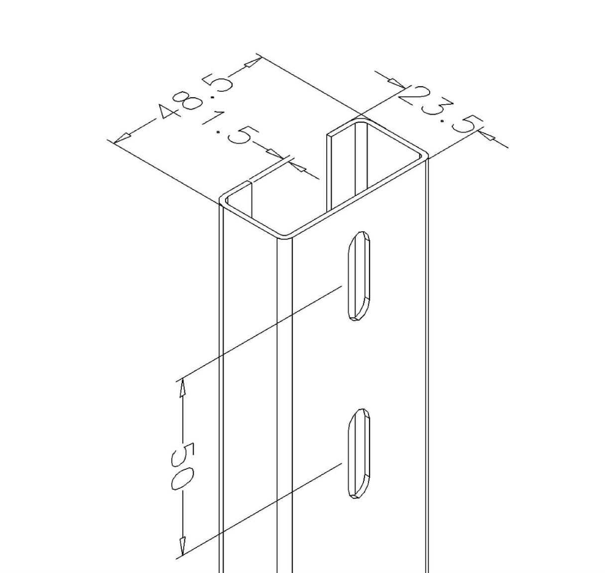 - oválné otvory 8,5 x 25 mm každých 50 mm na široké straně