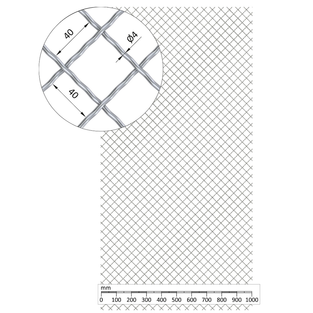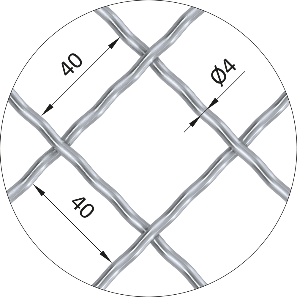 oko 40 x 40 mm, ø pletiva 4 mm