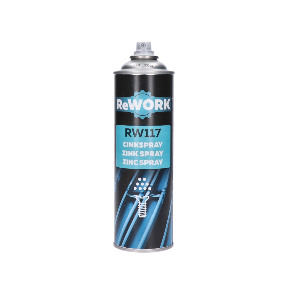 Zinkový sprej RW117 - rychleschnoucí sprej s úzkou tryskou, stříká na šířku cca 5 cm, dobře přilnavý, svařitelný a přelakovatelný. Vytváří ochrannou vrstvu, která chrání kovové povrchy před korozí a oxidací a zlepšuje jejich výkon. Při znovusvařování se nevytváří bubliny. Teplotně stabilní do 650°C.