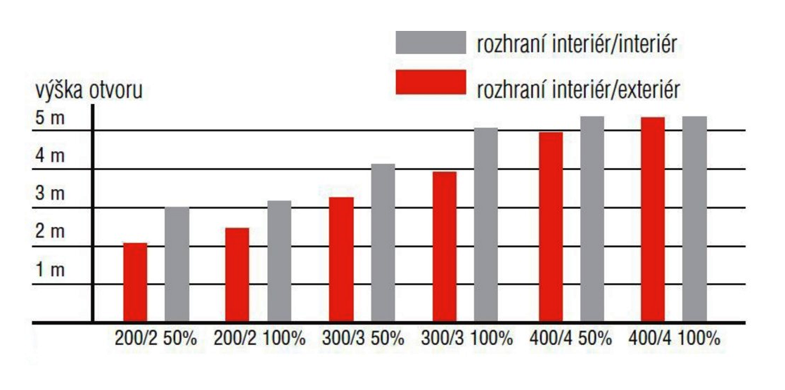 Dle uvedeného grafu doporučujeme po zvážení místních podmínek zvolit variantu lamelové clony - kombinací vhodného typu plastu a procenta krytí lamel. Čím je clona vyšší, tím těžší lamely by měly být zvolené. Je ovšem také nutné zohlednit umístění clony - rozhraní interiér/interiér či spíše častější interiér/exteriér.
