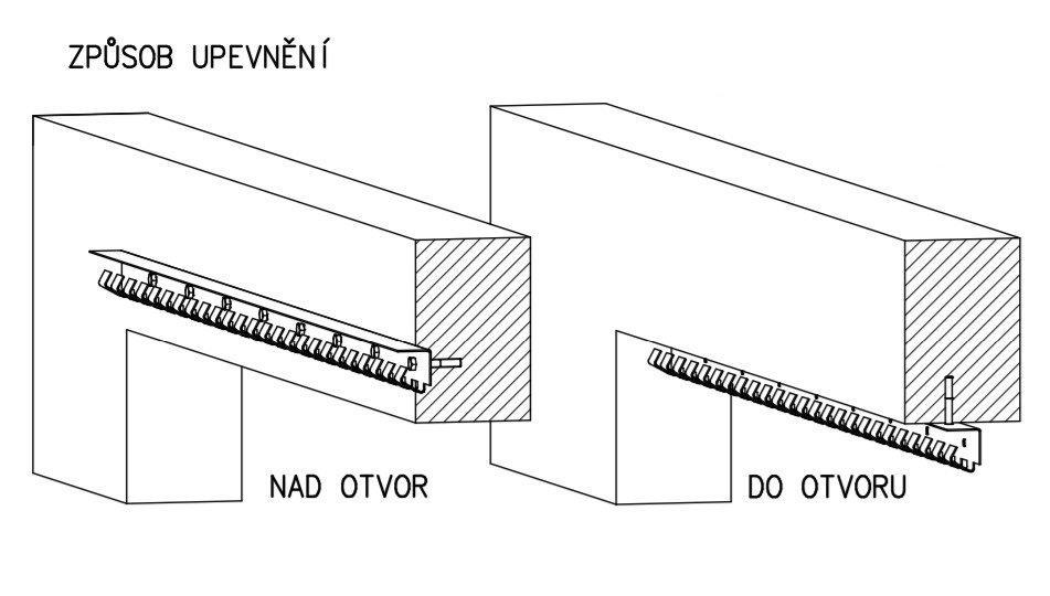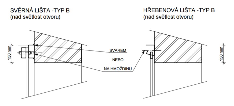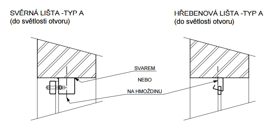 Svěrná a hřebenová lišta – kotvení do otvoru, nad otvor